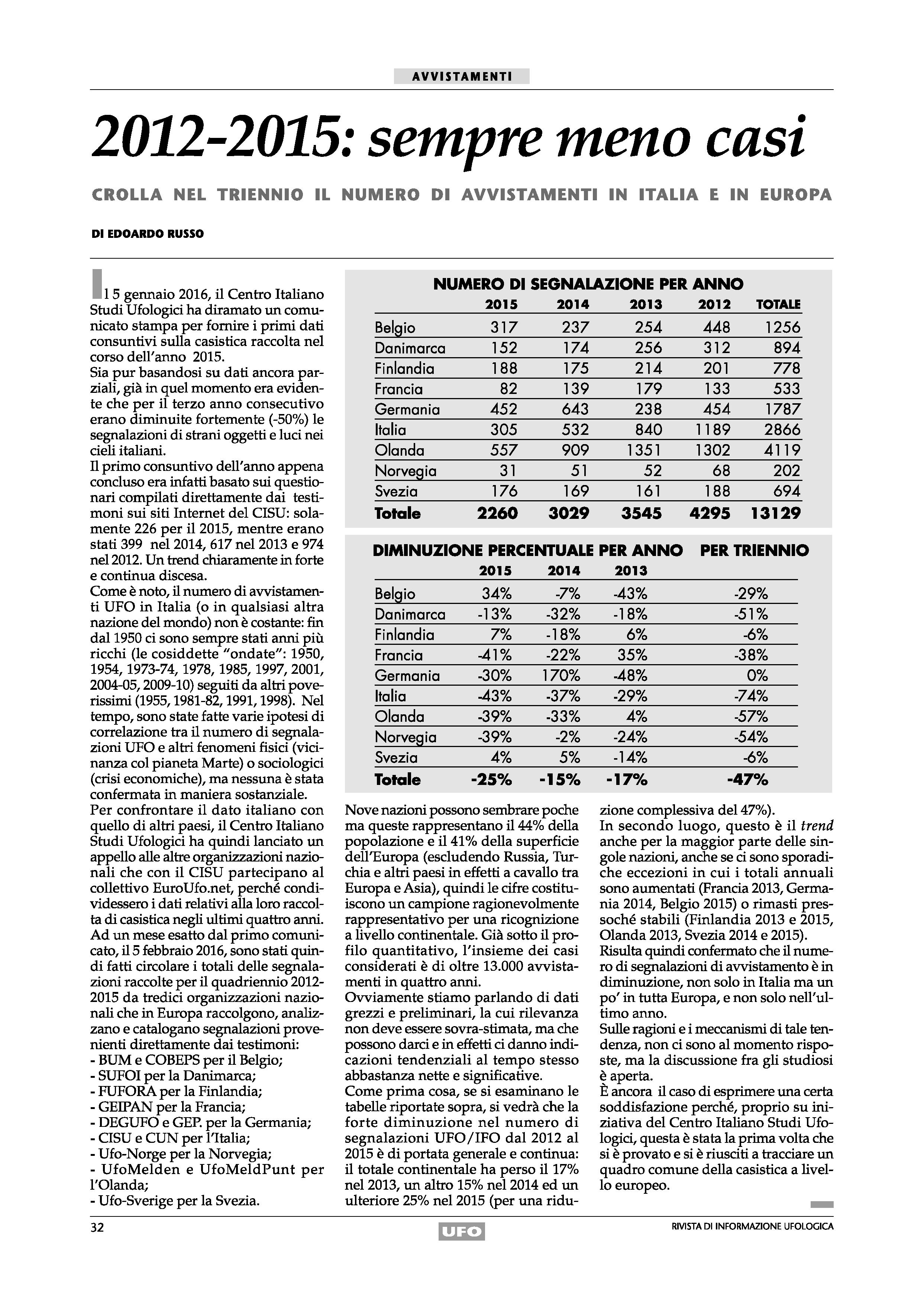 L’autore ringrazia sinceramente tutti i coordinatori nazionali e i ricercatori che, ogni anno, mettono a disposizione gratuitamente i propri dati per questo studio e la cui dedizione costante e il cui impegno volontario costituiscono le fondamenta della ricerca sugli UAP a livello europeo. Il loro impegno a lungo termine nella raccolta dei dati, nell’indagine e nella trasparenza è essenziale per la continuità e la credibilità di questo lavoro.